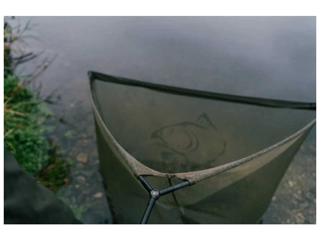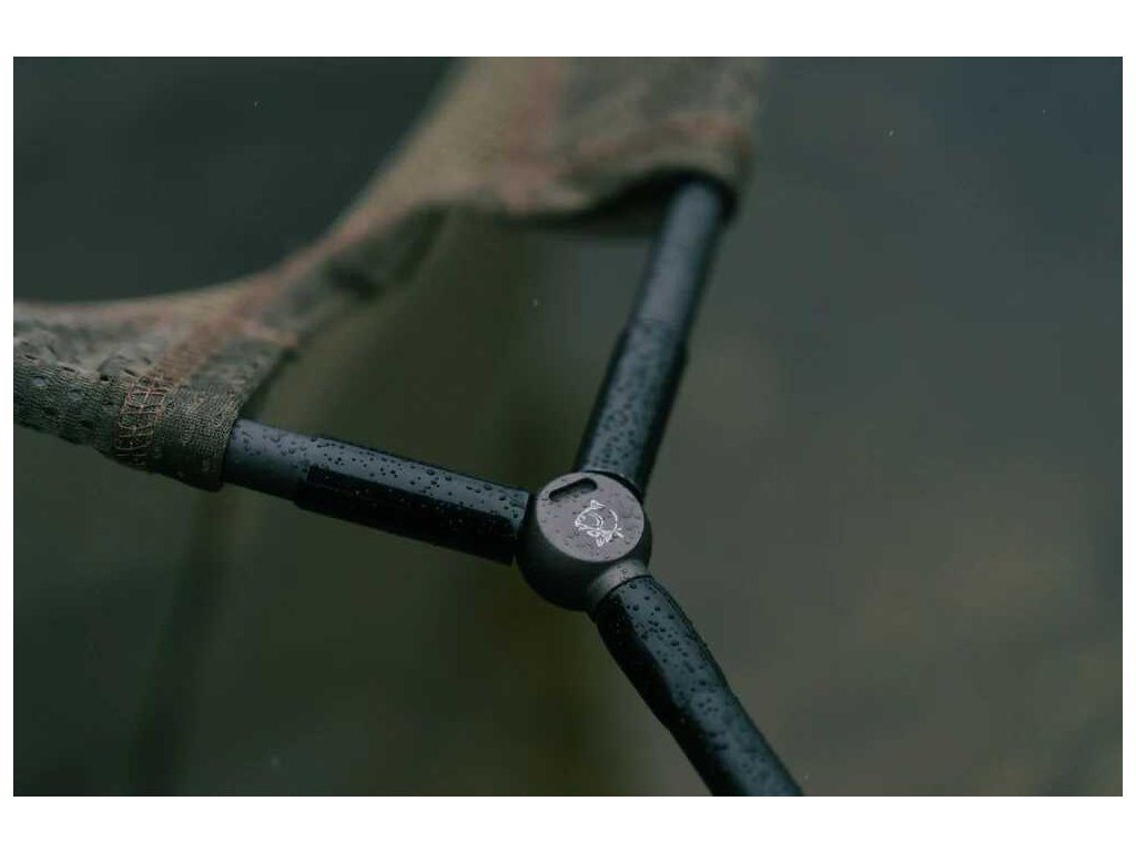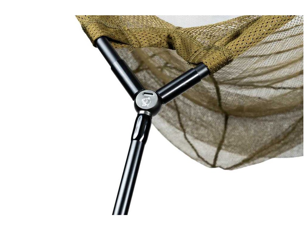 Dvě 46" karbonová ramena jsou spojena pomocí nasazovacích čepů (over-fit spigot) pro rychlou a bezproblémovou montáž. Ramena jsou napnuta paracordem, což vytváří široké 52" rozpětí a hloubku 48". Podběrák je zakončen zesílenou olivovou síťovinou s velkým sítotiskovým logem – výsledkem je špičková funkčnost v prémiovém provedení.