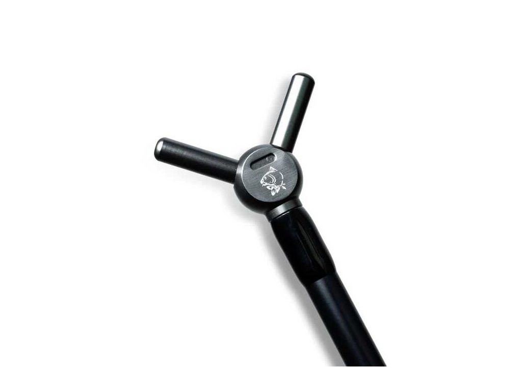 Hliníkový středový kříž s kartáčovaným povrchem disponuje laserem gravírovaným logem Nash a integrovaným slotem pro izotop. Obráběná špičatá koncovka rukojeti umožňuje dočasné zapíchnutí do břehu při přípravě prutů nebo manipulaci s rybou.